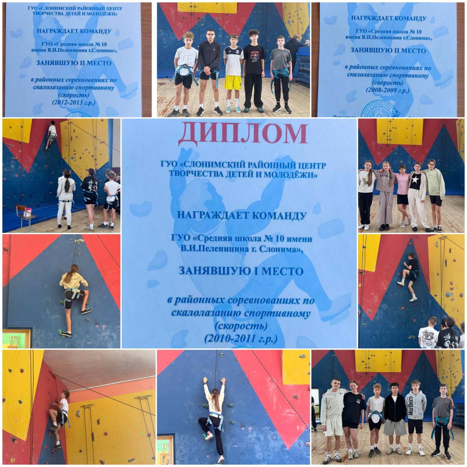 Поздравляем 3 команды учащихся и руководителя физвоспитания Сахонь Т.В. с победным выступлением в районных соревнованиях по спортивному скалолазанию (скорость).