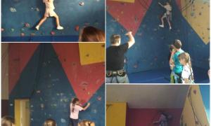 На скалодроме...
