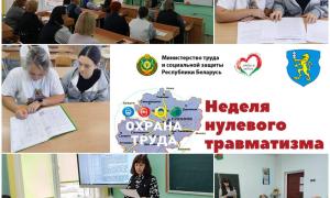 В учреждении образования проводится мероприятие "Неделя нулевого травматизма", цель которого -  обеспечение безопасности и здоровья работников на рабочих местах, предотвращение случаев производственного травматизма. В рамках данного мероприятия проведен внеплановый инструктаж по охране труда со сторожами и учителями физической культуры и здоровья,  областной День охраны труда с единой  повесткой «Культура производства, трудовая и производственная дисциплина – основа обеспечения безопасности труда», Единый день профилактики производственного травматизма.