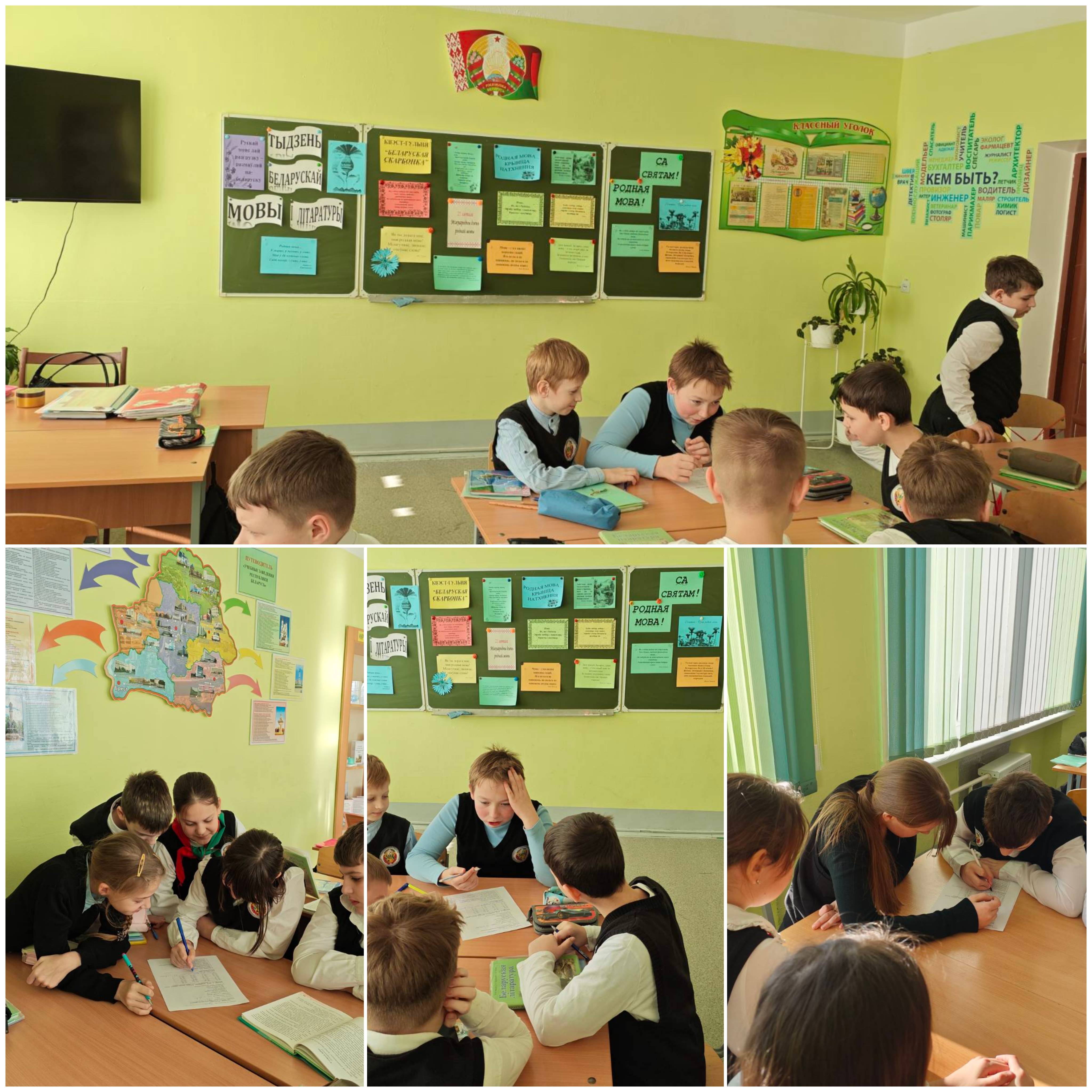 16 лютага вучні 5-ых класаў  прынялі ўдзел у цікавай і пазнавальна-займальнай квэст-гульні "Беларуская скарбонка". Аб'яднаўшыся ў каманды, пяцікласнікі здзейснілі падарожжа па прыпынках: "Жывое народнае слова", "З рога ўсяго многа", "Бліц-турнір", "Перакладчыкі", "Бабуліны пачастункі". Удзел у конкурсе даў магчымасць вучням  праявіць  кемлівасць і крэатыўнасць, абмяняцца цікавай інфармацыяй,  паказаць добрае веданне роднай мовы, фальклору і этнаграфіі роднага краю, а таксама адчуць атмасферу ўзаемападтрымкі і таварыскаскасці, атрымаць станоўчыя эмоцыі.