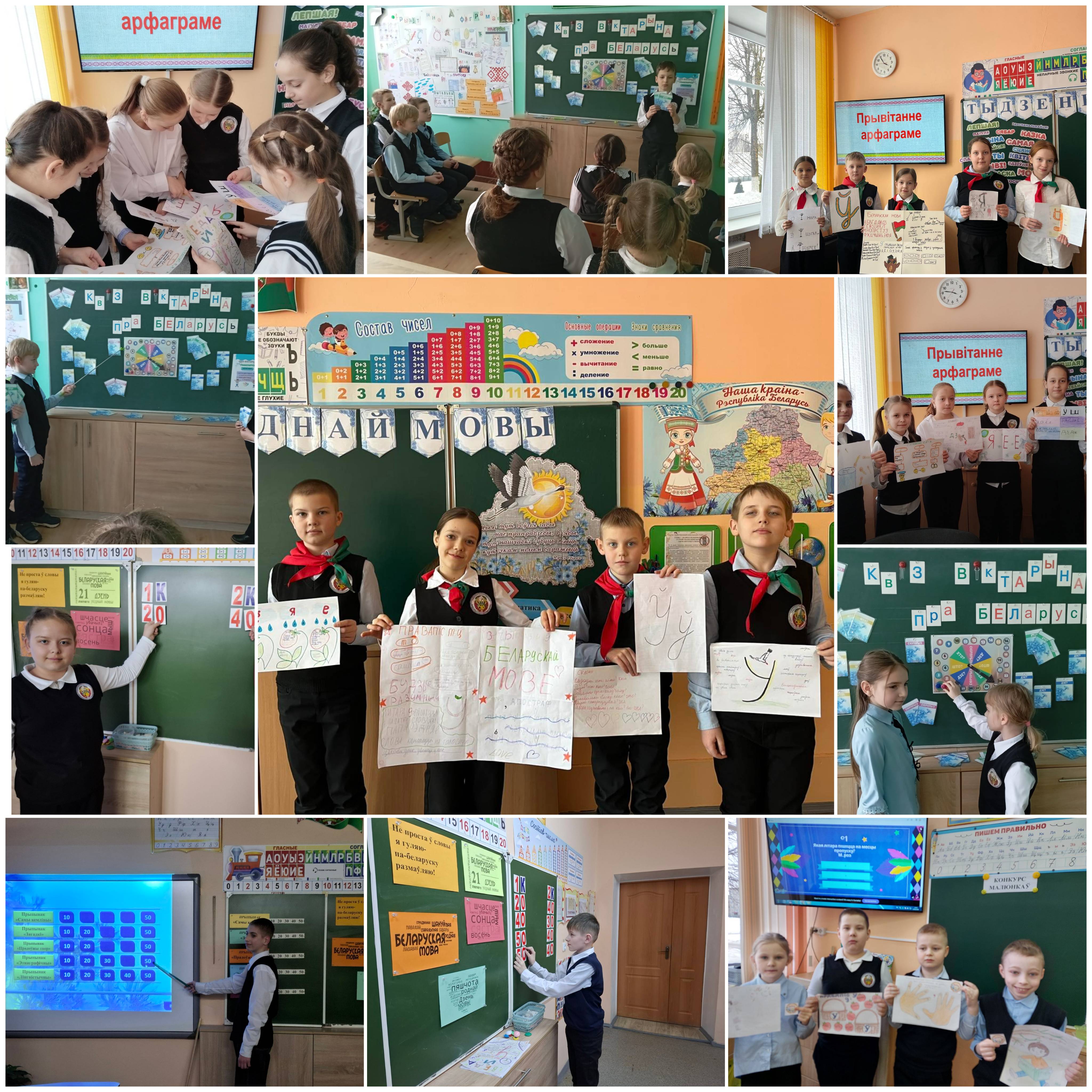 Вучні пачатковых класаў працягваюць спасцігаць таямніцы роднай мовы. Крэатыўнасць праявілі вучні ў конкурсе малюнкаў "Прывітанне арфаграме". Свае веды пра матэрыяльныя і нематэрыяльныя здабыткі нашай краіны прадэманстравалі, адказаўшы на пытанні квіз-віктарыны "PRAБеларусь". Вучні 4"В" класа прынялі ўдзел у пазнавальнай гульні "Роднае слова - моўная квецень". Дзеці разгадвалі загадкі, рашалі лінгвістычныя задачы, дэманстравалі кемлівасць і творчыя здольнасці, выконваючы цікавыя заданні.