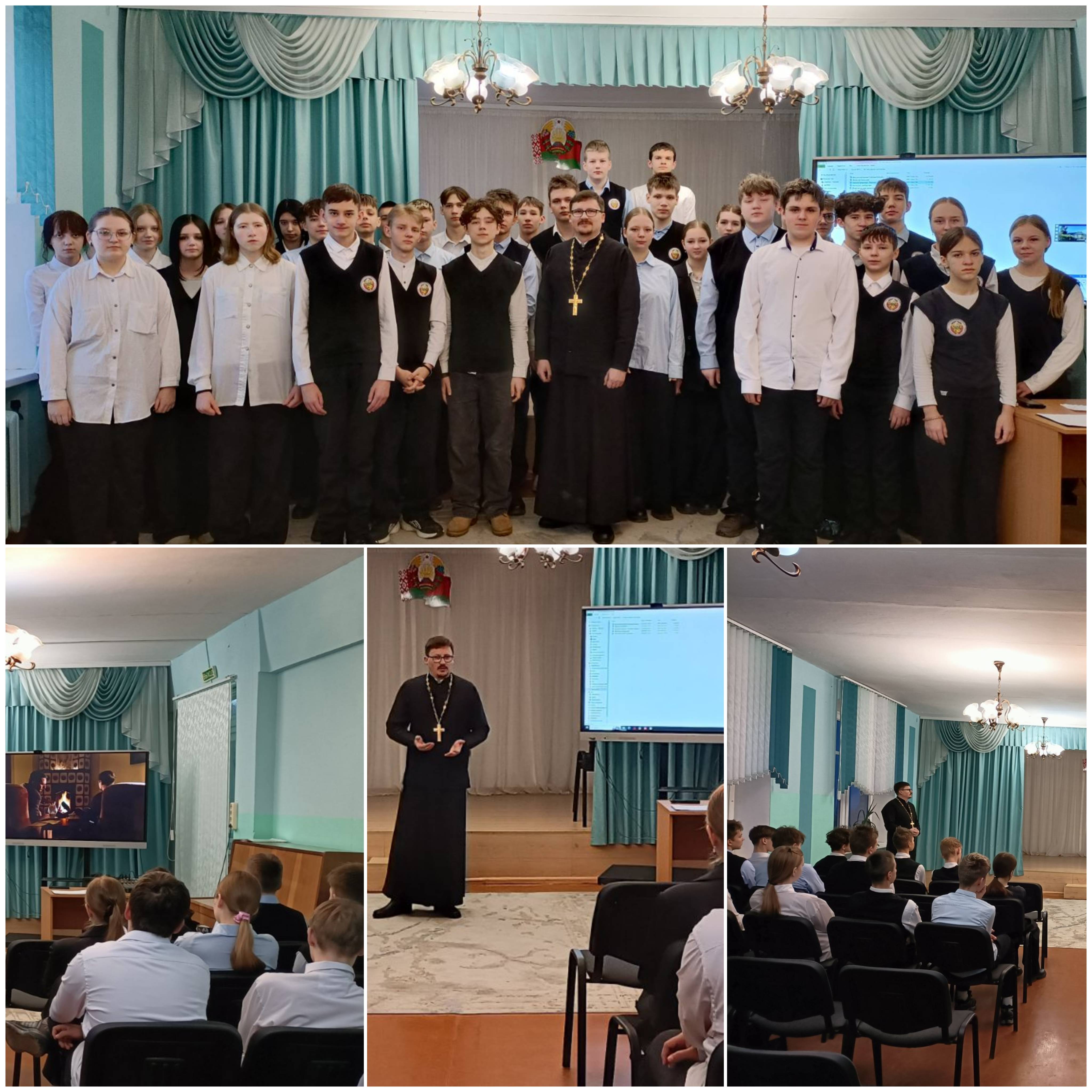 Сегодня в нашей школе состоялась важная и глубокая беседа – перед  девятиклассниками  выступил священник Сергий Ярмолович, чтобы  поговорить  о  том, что  волнует каждого: о свободе и моральном  выборе человека.