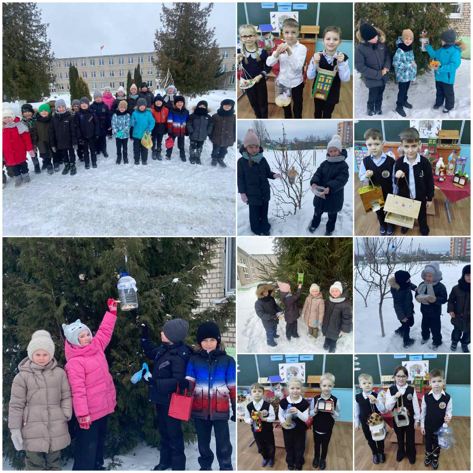 Первоклассники приняли активное участие в акции "Помоги птицам зимой", направленной на поддержку зимующих птиц в холодный период. Ребята вместе с родителями изготовили интересные по форме кормушки и развесили их во дворе школы. Ежедневно дети пополняют "птичьи столовые" кормом.