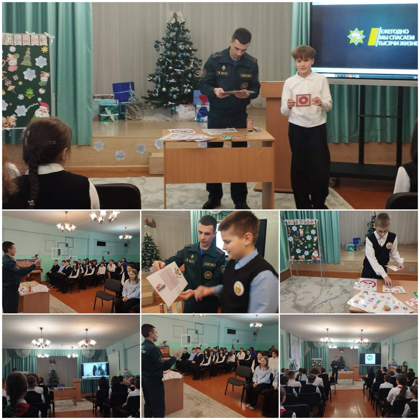 В рамках акции "Безопасный Новый год" Павлович Е.В., старший инспектор по ППиС Слонимского РОЧС, провел интерактивное занятие для учащихся 6-7 классов по основам безопасности жизнедеятельности. Ребята с удовольствием выполняли задания в прохождении лабиринтов, составлении алгоритма пользования огнетушителем, повторили знаки информирования в случаях экстремальных ситуаций, правила установки новогодних ёлок в жилых помещениях.