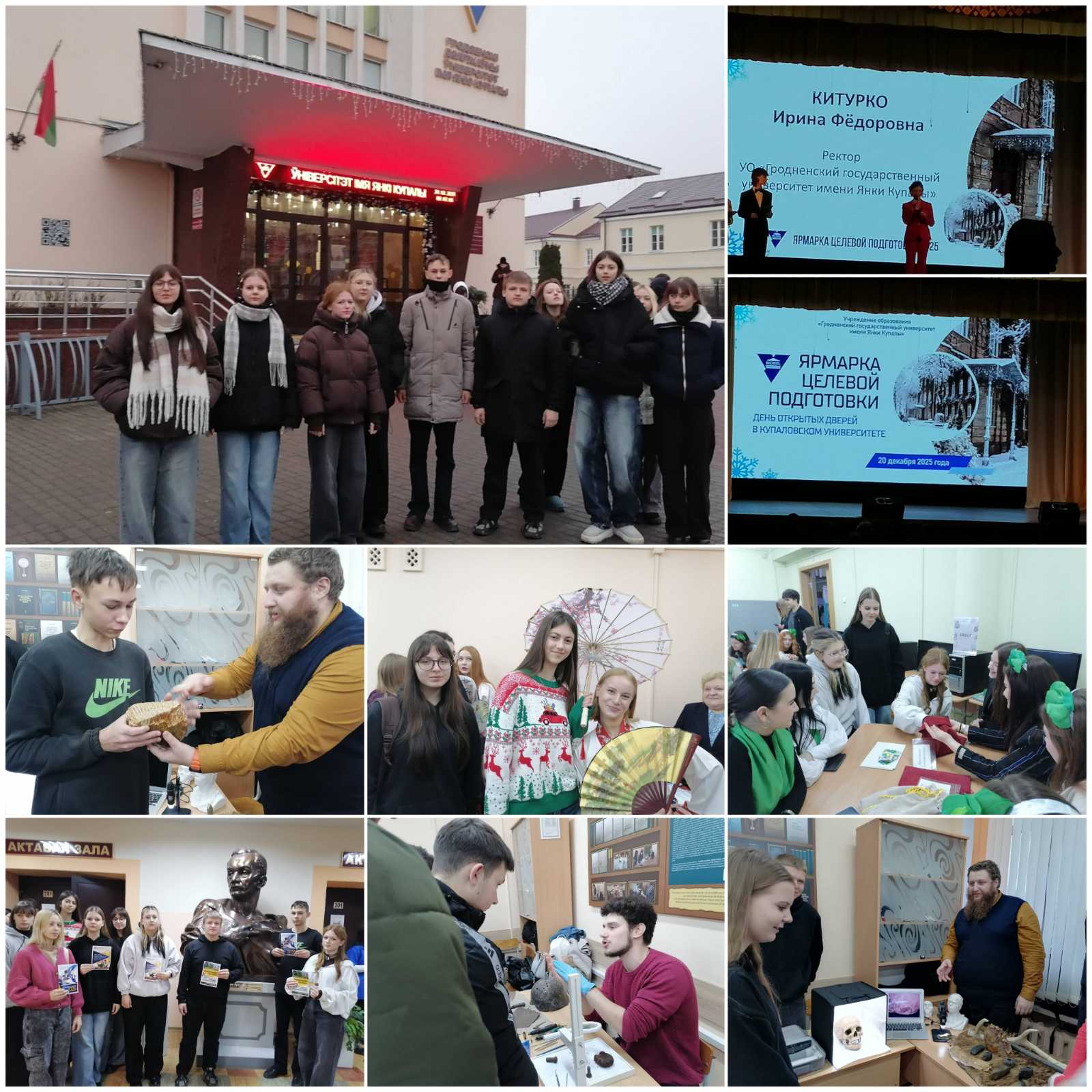 20 декабря в УО "Гродненский государственный университет имени Янки Купалы" состоялся Единый день открытых дверей «Ярмарка целевой подготовки в Купаловском университете». В мероприятии приняли участие учащиеся 10-11 классов нашей школы, которым была предоставлена возможность познакомиться с факультетами университета, а также с представителями организаций-заказчиков кадров Гродненского региона, заинтересованных в целевой подготовке специалистов и заключении целевых договоров.