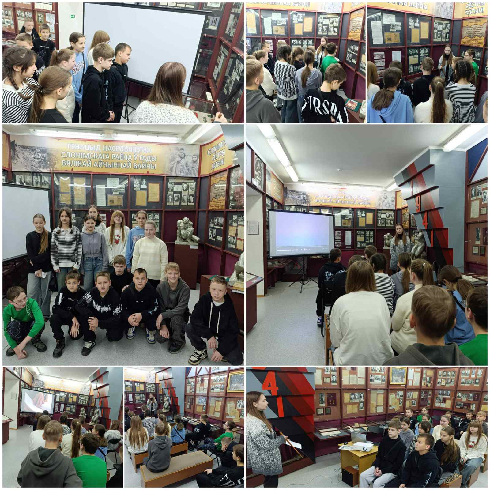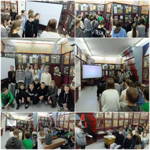 В 6 школьный день учащиеся 7 "В" класса посетили учреждение культуры «Слонимский районный краеведческий музей имени И.И.Стабровского», где познакомились с трагическими страницами истории белорусского народа, вспомнили о масштабах утрат, которые понёс белорусский народ в годы войны. Ребята узнали о судьбе уничтоженных деревень, массовых карательных акциях, жизни людей в оккупации, а также о фактах, подтверждающих систематический характер преступлений против мирного населения.